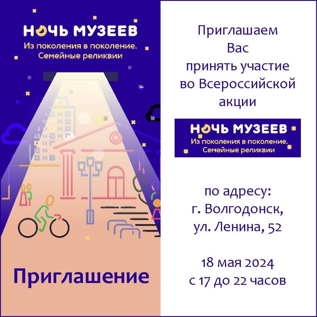 В этом году традиционная Всероссийская акция «Ночь музеев» пройдет 18 мая. В Волгодонске она будет посвящена Году семьи и семейным традициям и 55-летию Волгодонского эколого-исторического музея.