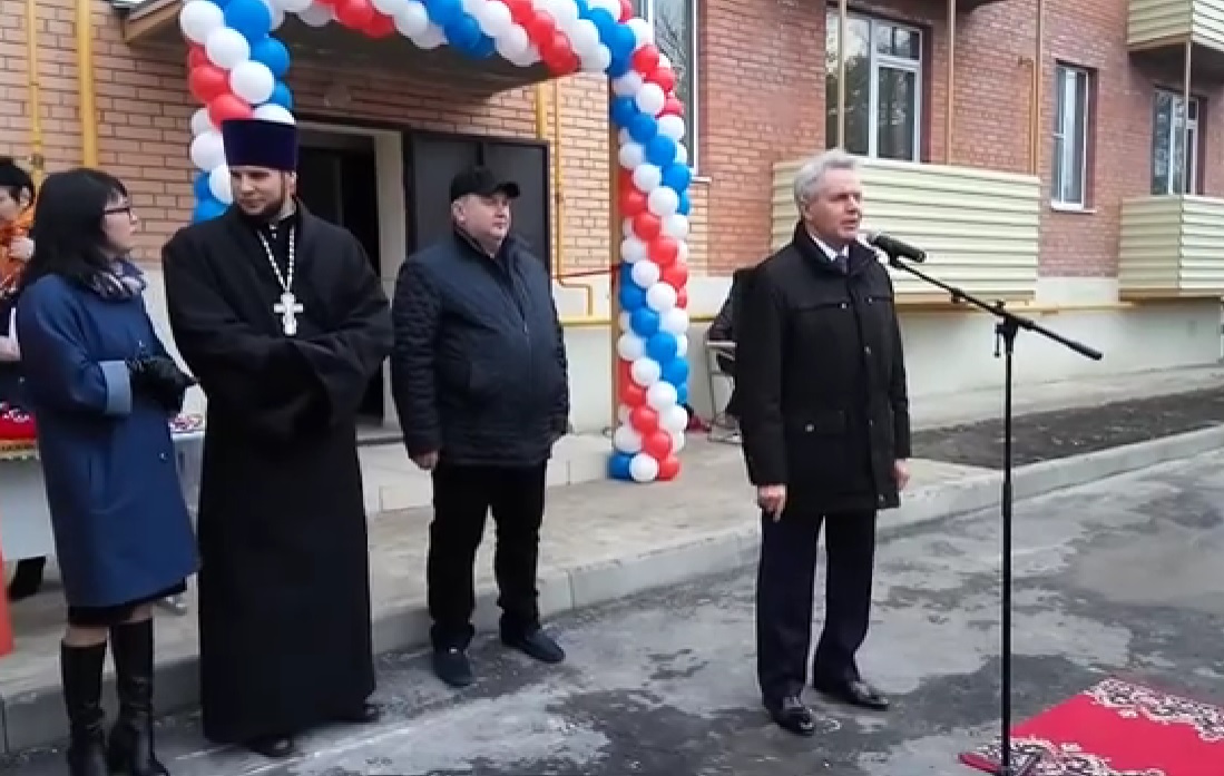 Скрин с видео - церемония вручения ключей в том самом доме на Нефтегорской