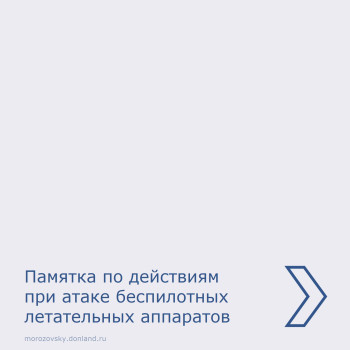 Уважаемые жители Морозовского района! Администрация Морозовского района напоминает о действиях при атаке беспилотных летательных аппаратов.