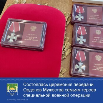 В администрации Азовского района состоялась церемония передачи Орденов Мужества семьям наших земляков, погибших в ходе специальной военной операции.