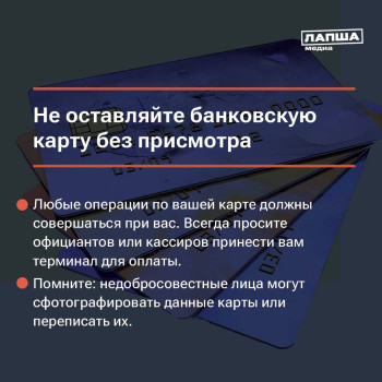 - Никогда не передавать свои личные данные и информацию о карте третьим лицам.