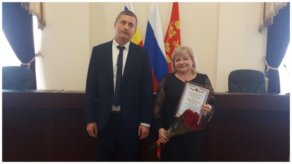 По поручению главы Администрации района Виктора Гусная на планёрном совещании в минувший понедельник Антон Шапошников поздравил Елену Житникову с юбилеем и поблагодарил её за активную трудовую деятельность, направленную на развитие эффективной системы муниципального контроля и финансовой дисциплины в Усть-Донецком районе.