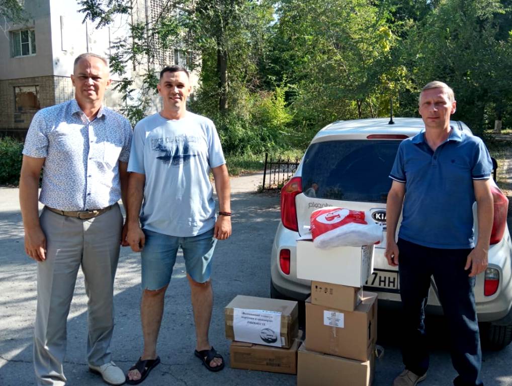 Председатель Волгодонской городской Думы Сергей Ладанов, его заместитель Игорь Батлуков, депутат ВГД по округу №2 Евгений Антонов и руководитель городского отделения общественной организации «Матери России» Светлана Зяблова, а также коллектив аптеки «Айболит» собрали и отправили для своих земляков, воюющих на Донбассе, обезболивающие и противовирусные медицинские препараты, перевязочные материалы.