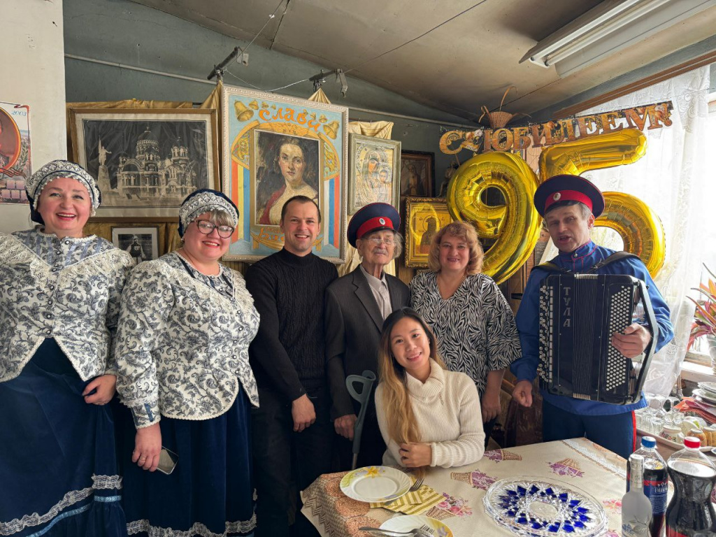 Сегодня ветерана с юбилеем поздравили сотрудники Администрации Рассветовского сельского поселения и народный ансамбль "Рассвет".